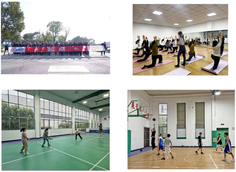 篮球场上,员工们起跳、投篮